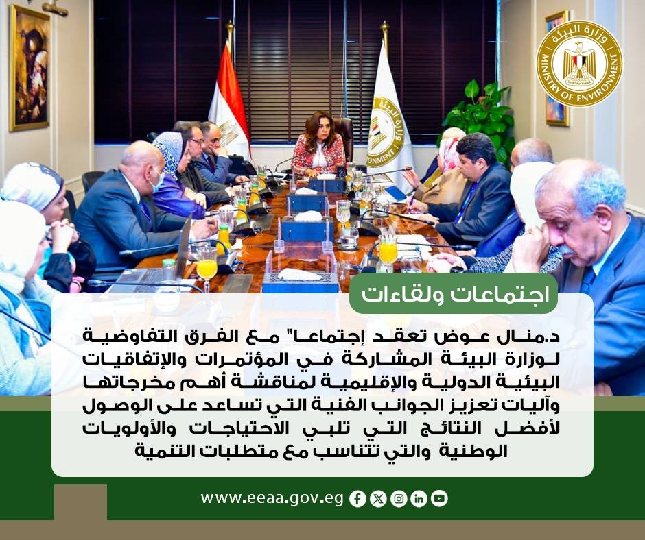 عقدت الدكتورة منال عوض وزيرة التنمية المحلية والقائم بأعمال وزير البيئة اجتماعًا مع الفرق التفاوضية للوزارة لمراجعة أهم المخرجات الفنية وآليات تعزيزها، بما يضمن تلبية الأولويات الوطنية والتعاون المستمر مع وزارة الخارجية والجهات الشريكة، بما في ذلك COP30 واتفاقية الحد من التلوث البلاستيكي و COP24.