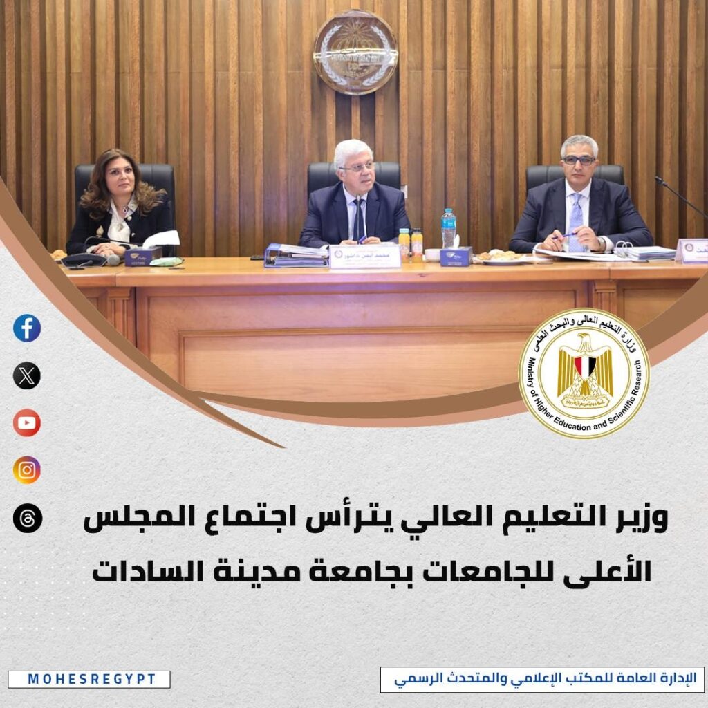 تواصل وزارة التعليم العالي والبحث العلمي جهودها لتطوير منظومة التعليم العالي والبحث العلمي في مصر، ودعم القضايا التنموية والمجتمعية.
