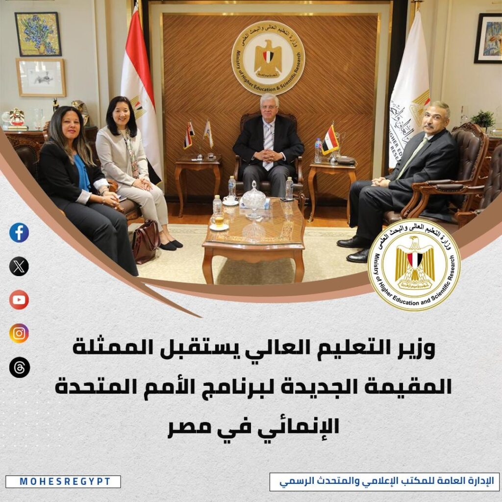 استقبل الدكتور أيمن عاشور وزير التعليم العالي والبحث العلمي، السيدة تشيتوسي نوجوتشي الممثلة المقيمة الجديدة لبرنامج الأمم المتحدة الإنمائي في مصر، وخلال الاجتماع، ناقش الجانبان سبل تعزيز التعاون في مجال الابتكار والبحث العلمي خلال الفترة القادمة، كما ناقش الاجتماع أوجه التعاون المشترك بين الوزارة والبرنامج في مشروع “تحويل مصر إلى مجتمع معرفي مبتكر مستدام”، بهدف توظيف الابتكار التكنولوجي لخلق القيمة وتعزيز الاستدامة في جميع قطاعات الإنتاج والخدمات في مصر كنهج محوري للتغلب على التحديات الاقتصادية، وتحقيق أهداف النمو المنشودة وتحسين جودة الحياة، وتعزيز القدرة التنافسية لمصر إقليميًا وعالميًا، وذلك لما يتمتع به المشروع من استراتيجية فعالة ومرونة في الإجراءات، ولما يوفره من موارد بشرية وفنية تتيح تنفيذ أنشطة غير تقليدية تتضمن نقل التكنولوجيا وتعميق التصنيع، وتعزيز دور التحالفات التكنولوجية بين مؤسسات التعليم العالي والصناعة والحكومة والمستثمرين ورواد الأعمال في التنمية المستدامة، وتأسيس وتدبير احتياجات مئات الشركات المنبثقة عن مخرجات البحث العلمي في جميع المحافظات على مستوى الدولة المصرية، والترويج للتحول الرقمي واعتماد الذكاء الاصطناعي في المؤسسات الأكاديمية.