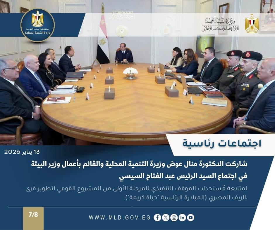 وشاركت الدكتورة منال عوض وزيرة التنمية المحلية والقائم بأعمال وزير البيئة، في الاجتماع الذي عقده السيد الرئيس عبدالفتاح السيسي، مع الدكتور مصطفي مدبولي رئيس مجلس الوزراء وعدد من الوزراء لمتابعة مُستجدات الموقف التنفيذي للمرحلة الأولى من المشروع القومي لتطوير قرى الريف المصري المبادرة الرئاسية “حياة كريمة”، والتي تُعد نموذجاً تنموياً غير مسبوق في التنمية الاقتصاديّة والعُمرانيّة.