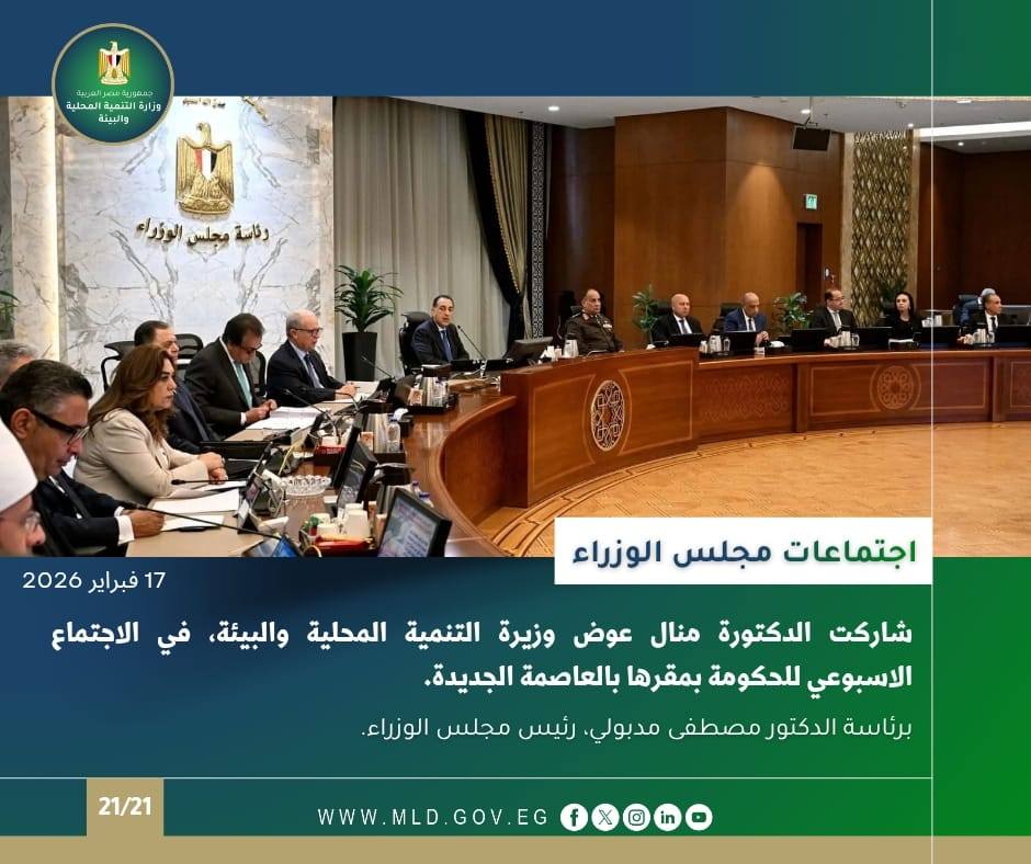 أصدر المركز الإعلامي لوزارة التنمية المحلية والبيئة “الانفوجراف الأسبوعي” في نسخته الـ 176 حول أبرز أنشطة وفعاليات الوزارة بقيادة الدكتورة منال عوض وزيرة التنمية المحلية والبيئة، حيث تضمن مجموعة من الفعاليات والاجتماعات ومتابعة المشروعات التنموية المهمة خلال الفترة (13 : 19 فبراير 2026).