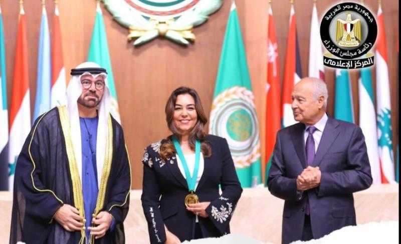 الأمين العام للجامعة العربية ووزير شؤون مجلس الوزراء بالإمارات يسلما وزيرة التنمية المحلية الجائزة