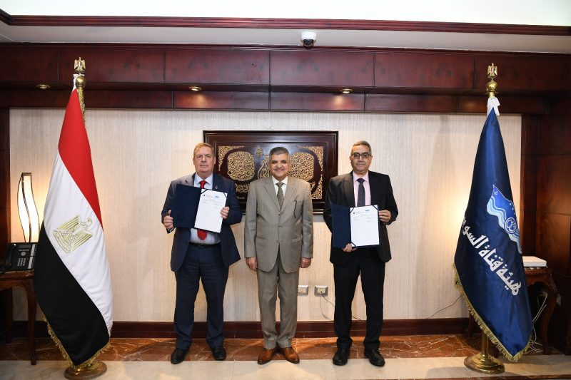 وقع مذكرة التفاهم، الدكتور فتحي عبد الباري مدير إدارة التخطيط والبحوث والدراسات بهيئة قناة السويس، والسيد جاي بلاتين الأمين العام لغرفة الملاحة الدولية.