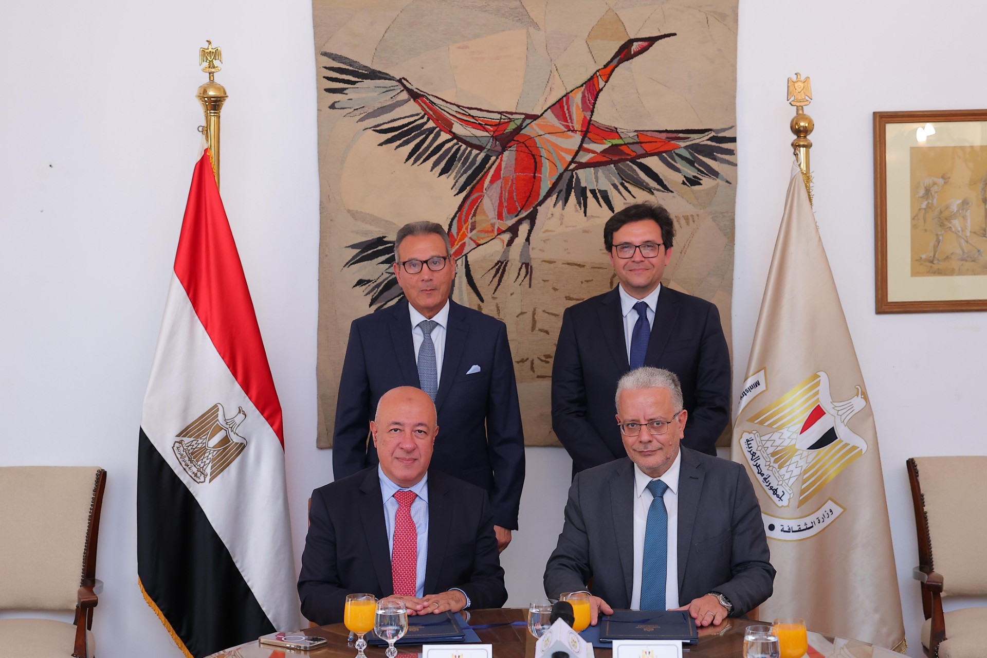 ووقع البروتوكول عن وزارة الثقافة الدكتور وليد قانوش، رئيس قطاع الفنون التشكيلية، بينما وقّعه عن البنك الأهلي المصري يحيى أبو الفتوح، نائب الرئيس التنفيذي للبنك الأهلي المصري.