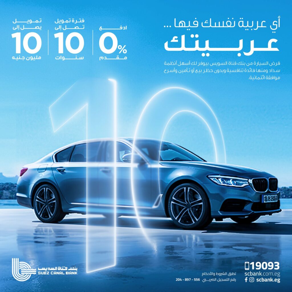 بنك قناة السويس يٌقدم تمويل السيارات بمزايا استثنائية وبتمويل يصل إلى 10 مليون جنيه وفترات سداد مرنة حتى 10 سنوات