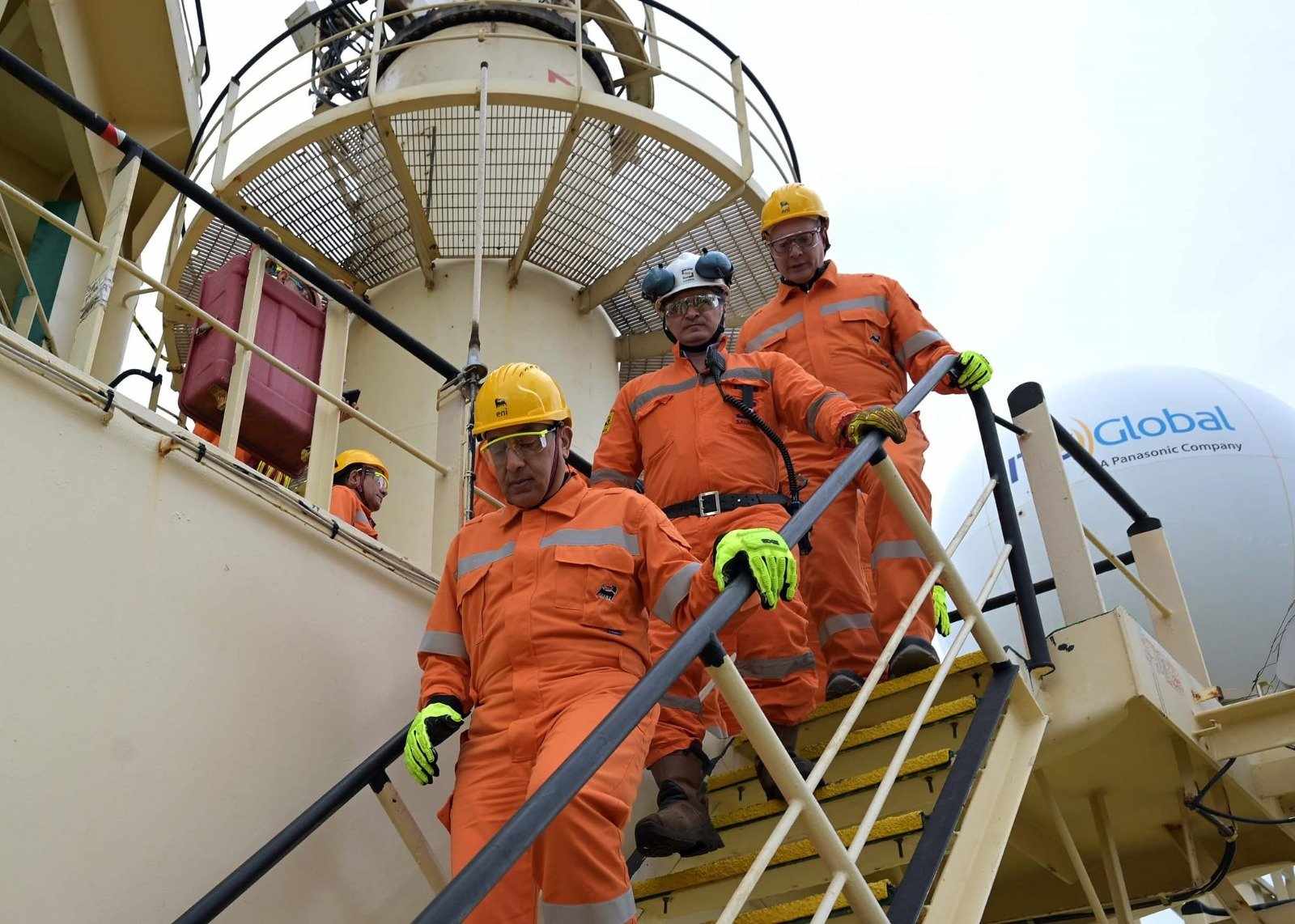 خلال زيارة الدكتور مصطفى مدبولي، رئيس مجلس الوزراء، لموقع حقل ظهر للغاز الطبيعي شمال بورسعيد، لتفقد حفار ظهر “سايبم 10000″، يرافقه المهندس كريم بدوي، وزير البترول والثروة المعدنية، حيث كان في استقبالهما فرانشيسكو جاسباري، مدير عام شركة إيني، مارتينا اوبيتسى، رئيسة منطقة شمال افريقيا والمشرق العربي لشركة إيني، استمع رئيس الوزراء إلى شرح من مسئول شركة الحفار حول المواصفات العالية التي يتمتع بها حفار ظهر “سايبم 10000″، مشيرًا إلى أن الحفار روعي في اختياره القدرة على الوصول إلى أعماق كبيرة، بما يُسّهل مهام الحفر بصورة فعّالة.