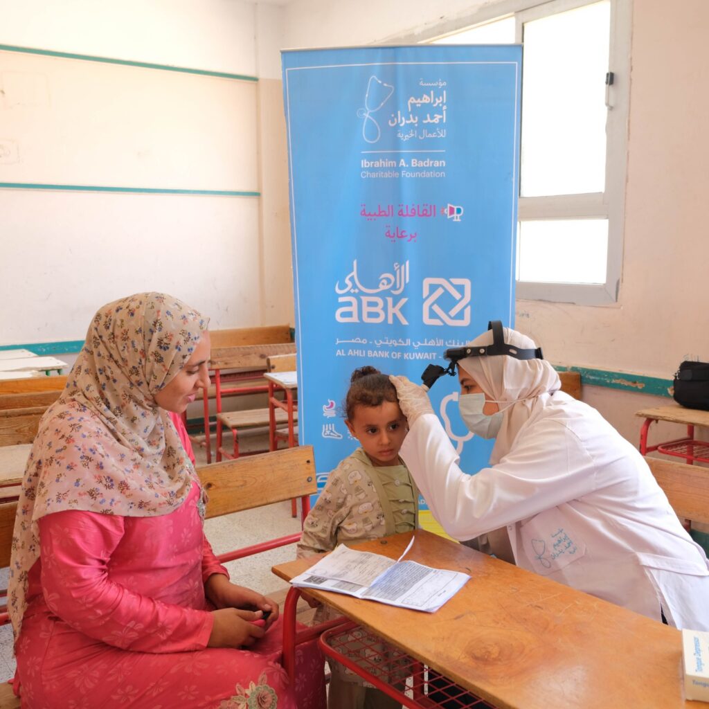 موظفو البنك الأهلي الكويتي – مصر يشاركون في قوافل مؤسسة إبراهيم بدران الطبية للأطفال بمحافظة البحيرة