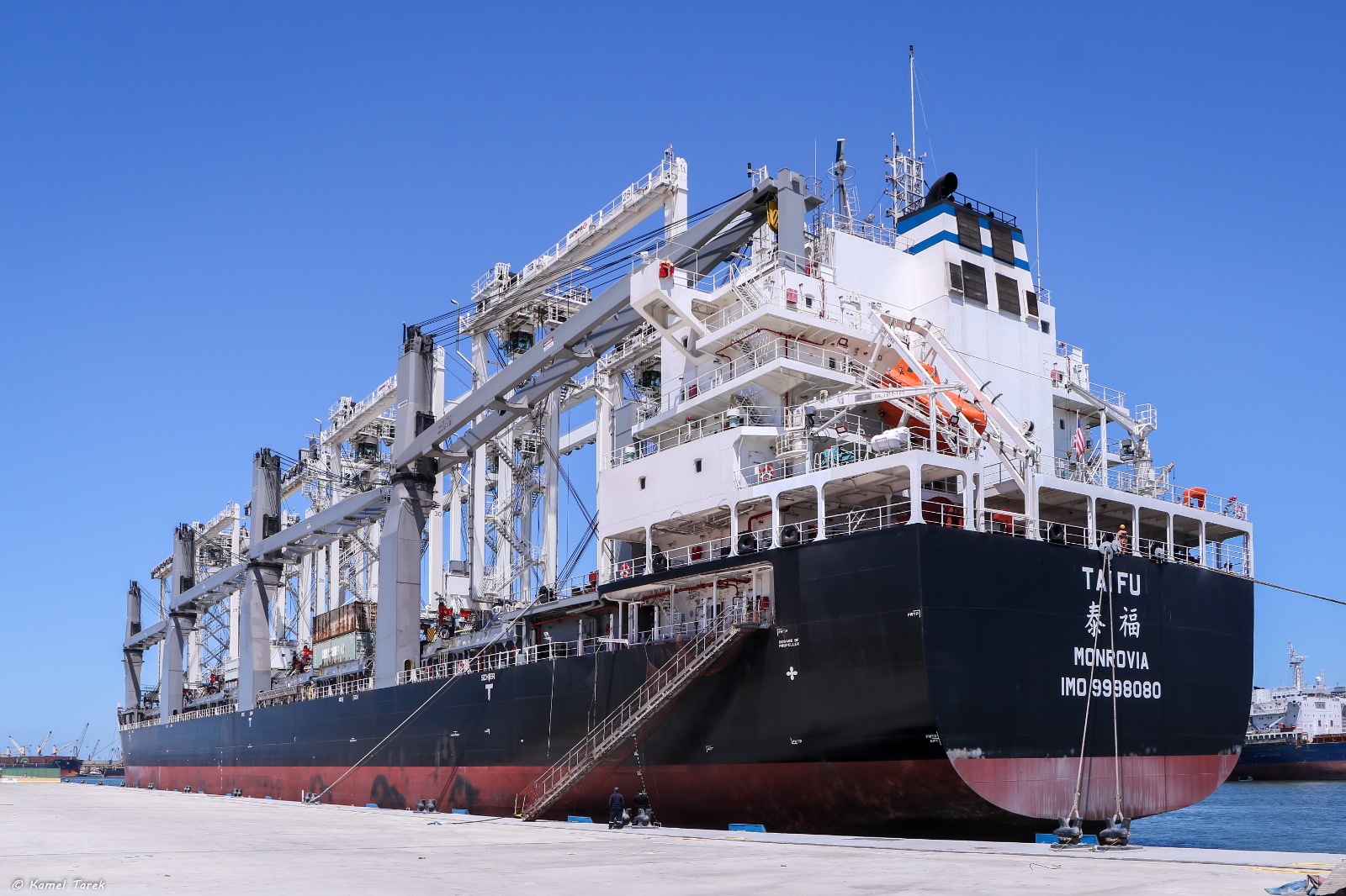 كما سبق استقبال عدد 7 أوناش رصيف عملاقة ، من إجمالي 12 ونش يتم توريدها تباعاً من أحدث الطرازات العالمية من إنتاج شركة HHMC الصينية ، والتي تتميز بقدرات استثنائية بقدرة رفع تصل إلى 75 طناً ، و ارتفاع 57.5 متراً ، وطول ذراع خارجي 72 متراً ، مما يمكّنها من التعامل بكفاءة مع سفن الحاويات العملاقة التي تصل إلى 11 حاوية ارتفاعاً .