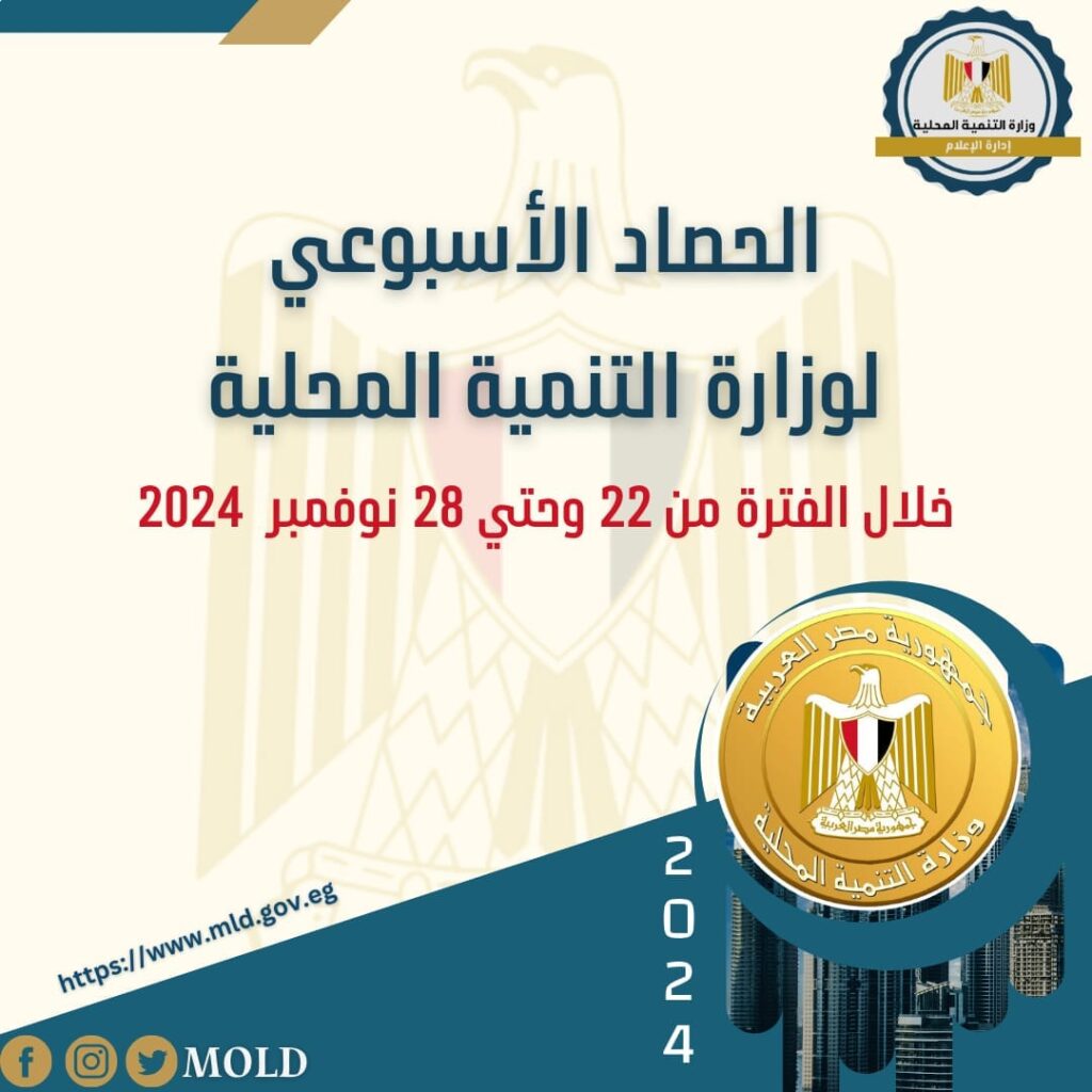 أصدر المركز الإعلامي التابع لوزارة التنمية المحلية، “الانفوجراف الأسبوعي” في نسخته الـ 112 حول حصاد أهم الأنشطة والفعاليات التي قامت بها الدكتورة منال عوض وزيرة التنمية المحلية، خلال الفترة من يوم الجمعة 22 وحتى الخميس 28 نوفمبر الجاري 2024، حيث نستعرض أبرزها في التقرير التالي الذي نشرته الصفحة الرسمية لوزارة التنمية المحلية على موقع التواصل الاجتماعي “فيس بوك” من خلال انفوجراف يرصد أبرز تلك الأنشطة التي جاءت كالتالي: