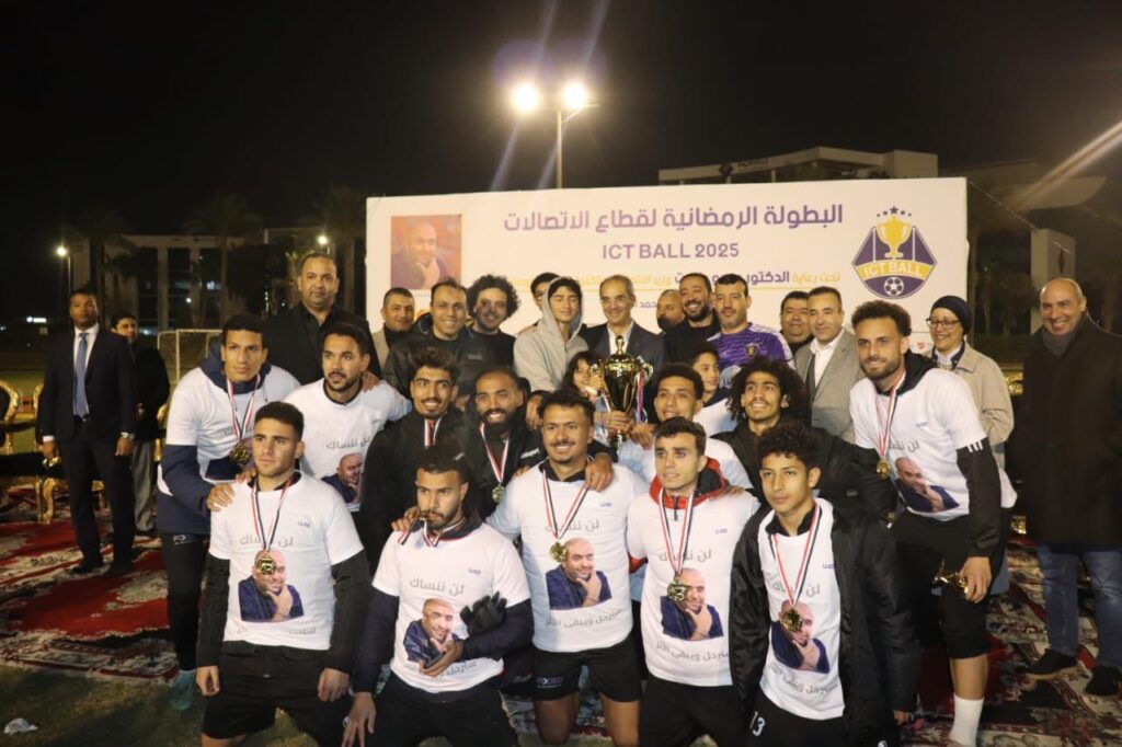 في أجواء حماسية ومليئة بالإثارة، قام الدكتور عمرو طلعت، وزير الاتصالات وتكنولوجيا المعلومات، بتتويج فريق الشركة المصرية للاتصالات ببطولة ICTBALL 2025 وسلمها كأس المرحوم محمد العزب، رئيس قطاع الإعلام السابق بالشركة المصرية للاتصالات وذلك في حفل ضخم أُقيم بعد المباراة النهائية للبطولة الرمضانية، التي شهدت منافسة قوية بين فريق الشركة المصرية للاتصالات وفريق معهد تكنولوجيا المعلومات (ITI)، وانتهت بفوز المصرية للاتصالات بنتيجة هدفين مقابل هدف واحد.