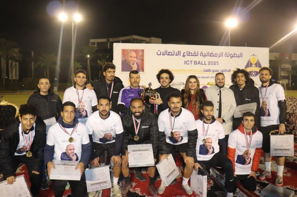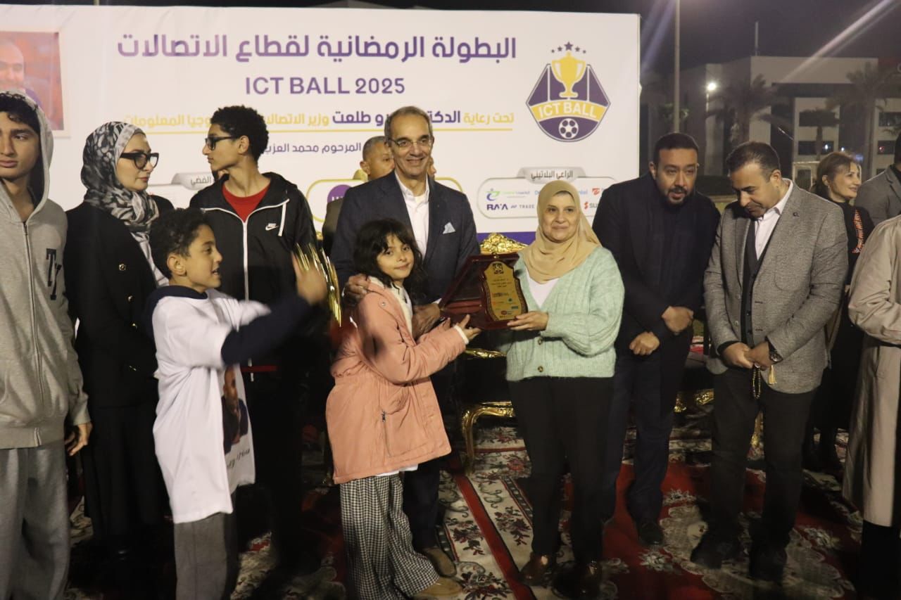 في أجواء حماسية ومليئة بالإثارة، قام الدكتور عمرو طلعت، وزير الاتصالات وتكنولوجيا المعلومات، بتتويج فريق الشركة المصرية للاتصالات ببطولة ICTBALL 2025 وسلمها كأس المرحوم محمد العزب، رئيس قطاع الإعلام السابق بالشركة المصرية للاتصالات وذلك في حفل ضخم أُقيم بعد المباراة النهائية للبطولة الرمضانية، التي شهدت منافسة قوية بين فريق الشركة المصرية للاتصالات وفريق معهد تكنولوجيا المعلومات (ITI)، وانتهت بفوز المصرية للاتصالات بنتيجة هدفين مقابل هدف واحد.