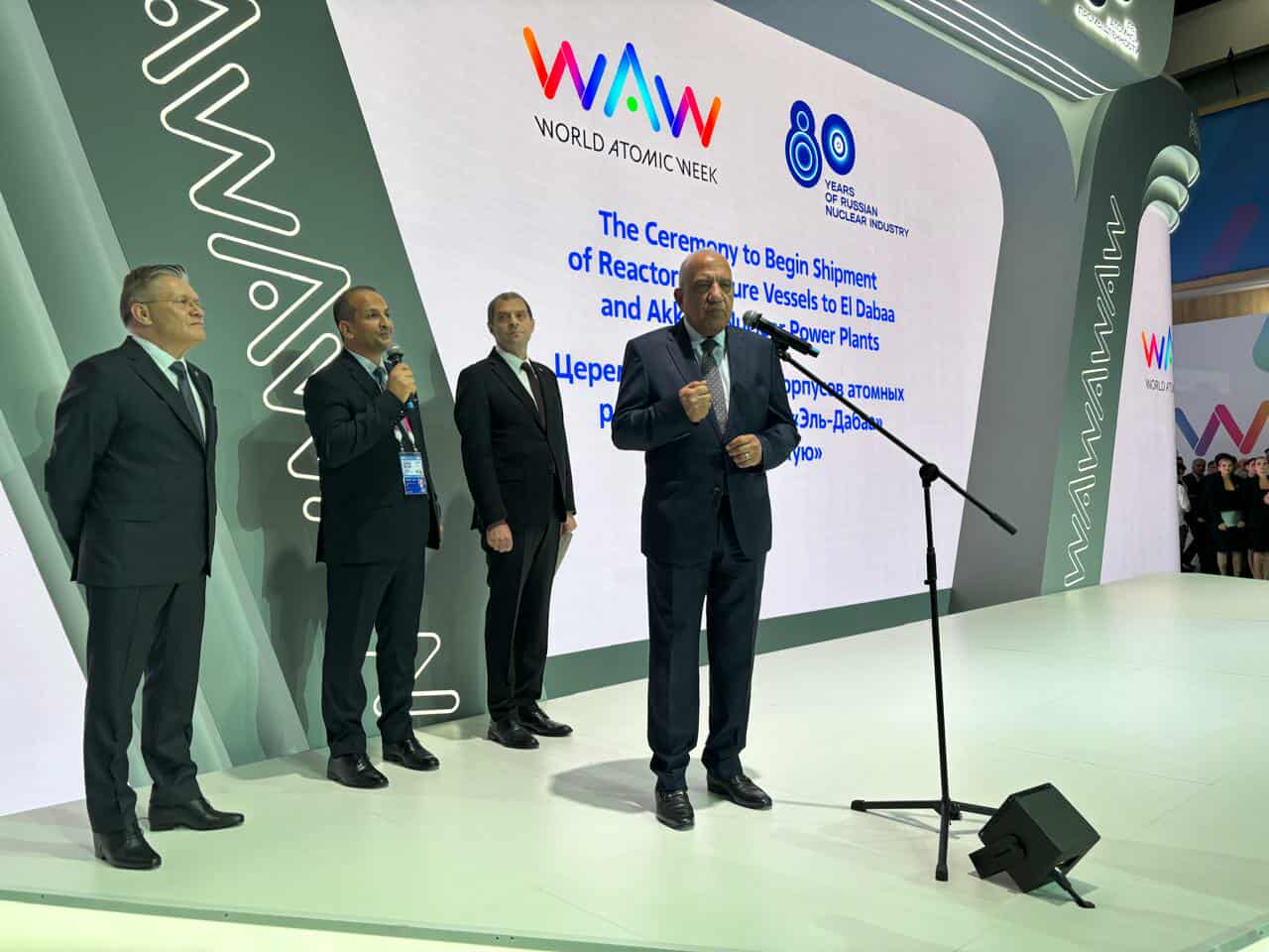 شهد الدكتور محمود عصمت وزير الكهرباء والطاقة المتجددة ، مراسم نقل وعاء ضغط المفاعل للوحدة النووية الاولى من ميناء مدينة سانت بطرسبورج إلى موقع المحطة النووية بالضبعة ، وذلك على هامش مشاركته فى القمة النووية العليا وفعاليات الأسبوع الذري العالمي بالعاصمة الروسية موسكو، وتمت المراسم بحضور الدكتور شريف حلمى رئيس هيئة المحطات النووية، والدكتور احمد فرغل رئيس الجهاز التنفيذى للإشراف على المشروعات النووية ، ومن الجانب الروسي ، أليكسى ليخاتشوف المدير العام للمؤسسة الحكومية الروسية للطاقة الذرية ” روساتوم ” والدكتور اندري بيتروف النائب الأول لمدير عام المؤسسة ، ورئيس شركة “آتوم ستروى إكسبورت ” القائمة على تنفيذ مشروع المحطة النووية بالضبعة ، بالاضافة عدد من مسئولي الملف النووى والاستخدامات السلمية للطاقة النووية فى مصر ، وروسيا