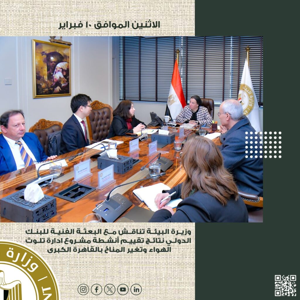 – وزيرة البيئة تناقش مع البعثة الفنية للبنك الدولي نتائج تقييم أنشطة مشروع”  ادارة تلوث الهواء وتغير المناخ بالقاهرة الكبرى”.